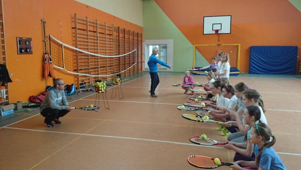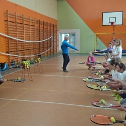 Zajęcia miały charakter zajęć pokazowych i propagujących tę dyscyplinę sportu wśród najmłodszych. Całość była zgodna z programem Polskiego Związku Tenisowego o nazwie TENIS 10 ( http://tenis10.pzt.pl/ ), którego celem jest zachęcenie do rozpoczęcia tenisowej przygody jak największej liczby dzieci i pokazanie tenisa ziemnego jako sportu „łatwego, przyjemnego, taniego i dostępnego każdemu dziecku". I zarówno odczucie ćwiczących dzieci jak i ocena trenerów prowadzących zajęcia - Piotr Mikulski i Krzysztof Matlakiewicz, potwierdzają te stwierdzenie. Poziom sprawności uczniów klas biorących udział w zajęciach był na tyle wysoki, iż można śmiało stwierdzić że drzemią w nich pokłady na przyszłych mistrzów godnych Agnieszki Radwańskiej czy Jerzego Janowicza. Dzieci biorące udział w zajęciach wykazywały się nie tylko dużą sprawnością i umiejętnościami przyswajania nowych ruchów tenisowych, ale również wiedzą na temat samego tenisa. To potwierdza tylko pomysłodawców programu TENIS 10, iż tenis może śmiało konkurować z takimi dyscyplinami sportowymi jak piłka siatkowa, koszykowa a może i……. nożna. Po zajęciach można było się zapisać do szkółki tenisowej HELIOS, która w weekend majowy rozpoczyna nabór chętnych dzieci na zajęcia.