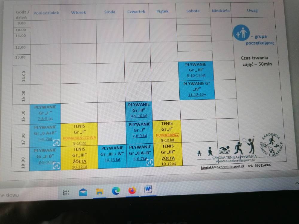 Od Października 2020 ulega korekta grafiku zajęć pływackich.