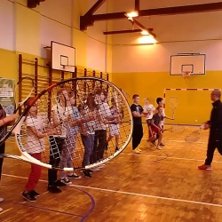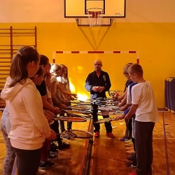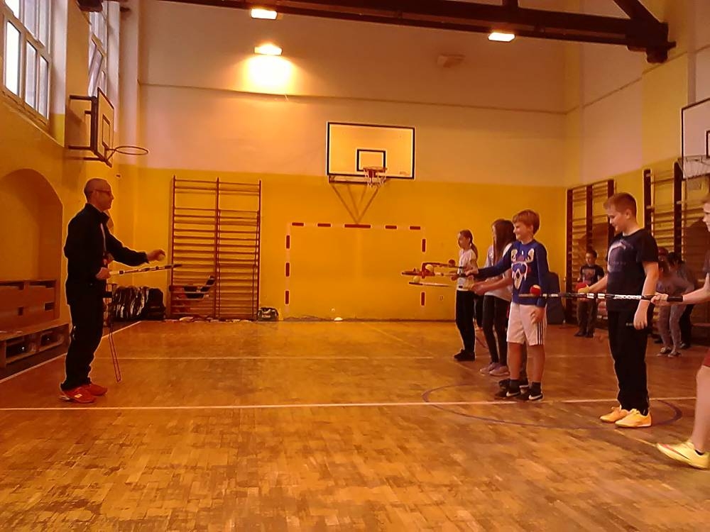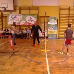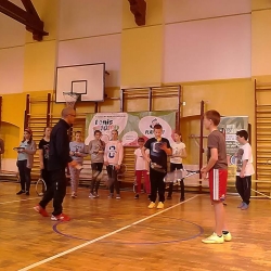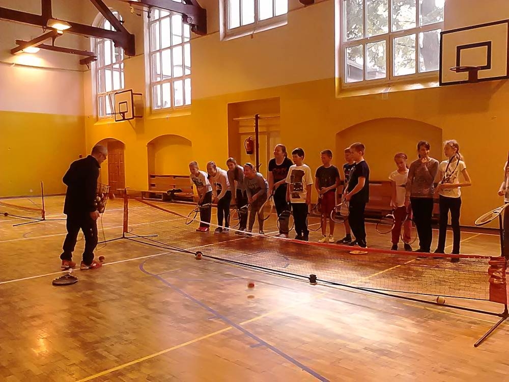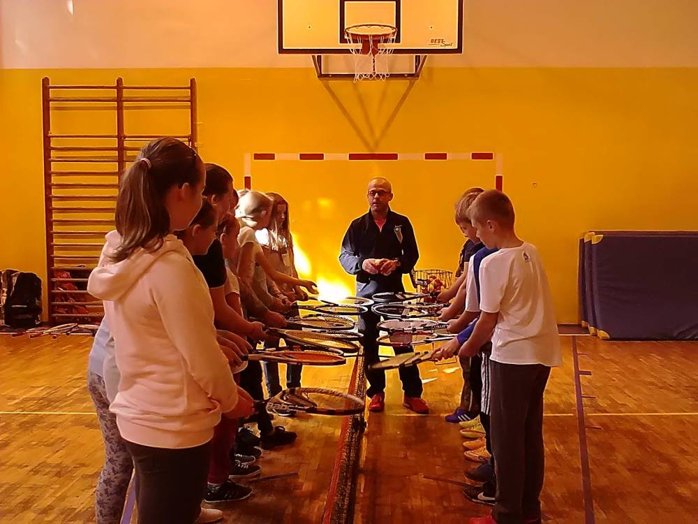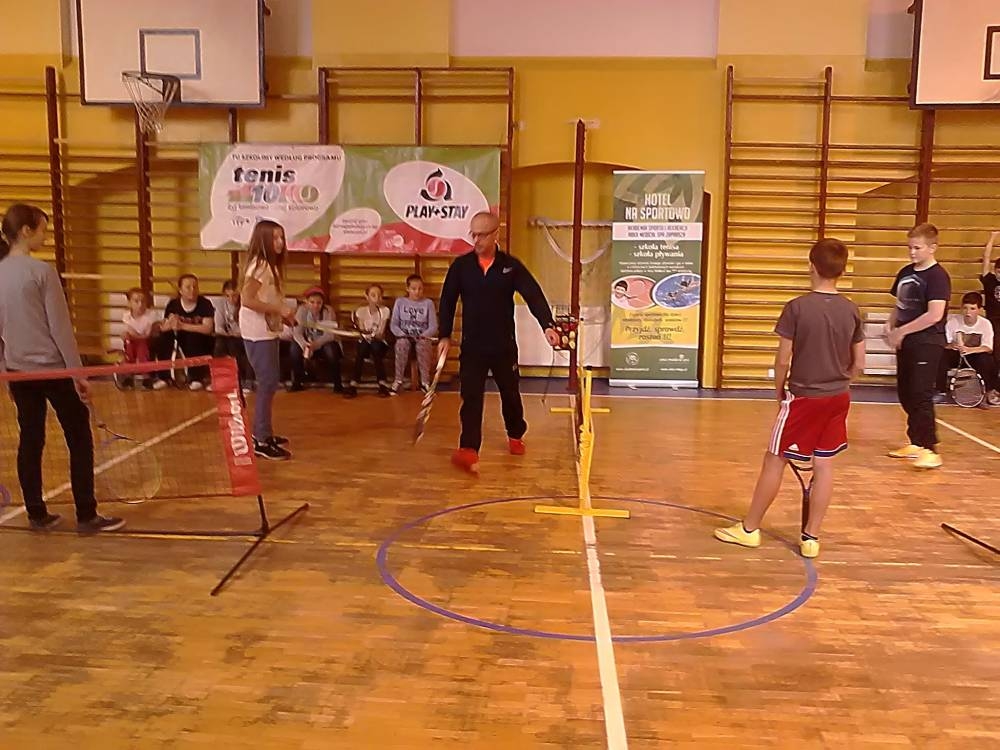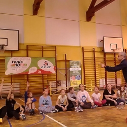 Zajęcia odbywały się w godzinach 8.00 do 15.30 i miały charakter zajęć pokazowych. Wiek dzieci biorących udział w zajęciach był różny i zawierał się w przedziale od 2 do 6 klasy szkoły podstawowej. I im młodsze klasy tym wydaje się było większe zainteresowanie zajęciami i zaangażowaniem w trakcie ich trwania. Zajęcia przeprowadziliśmy na sali gimnastycznej i pomimo niedużych jej rozmiarów udało się je przeprowadzić w sposób atrakcyjny i urozmaicony dla dzieci. To tylko dowodzi uniwersalności zajęć tenisowych dla najmłodszych.