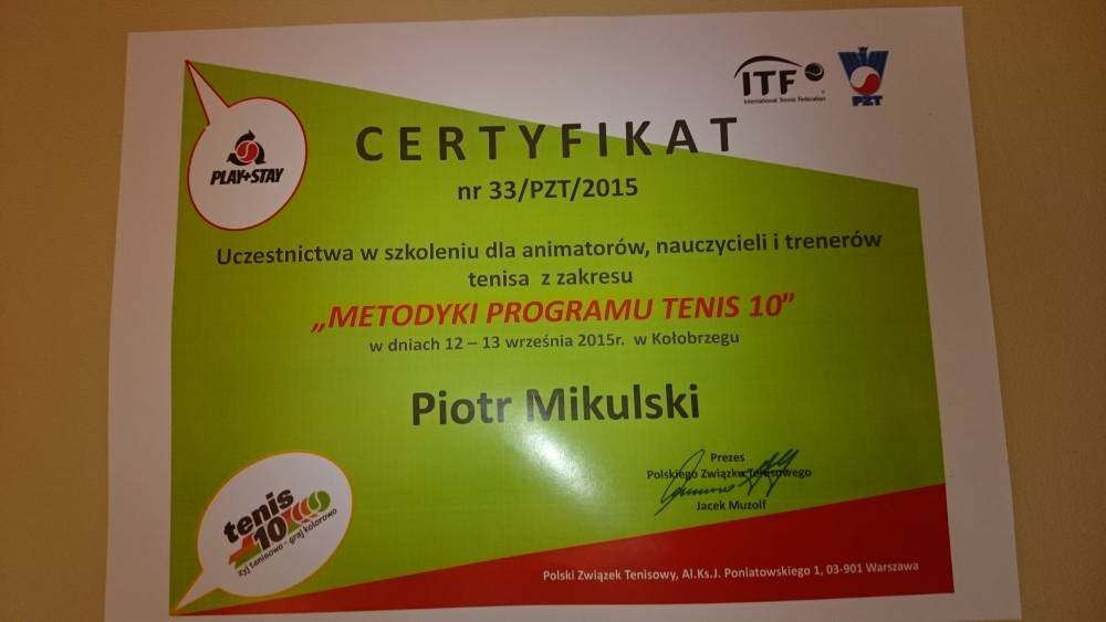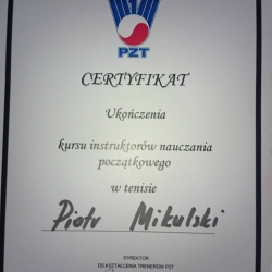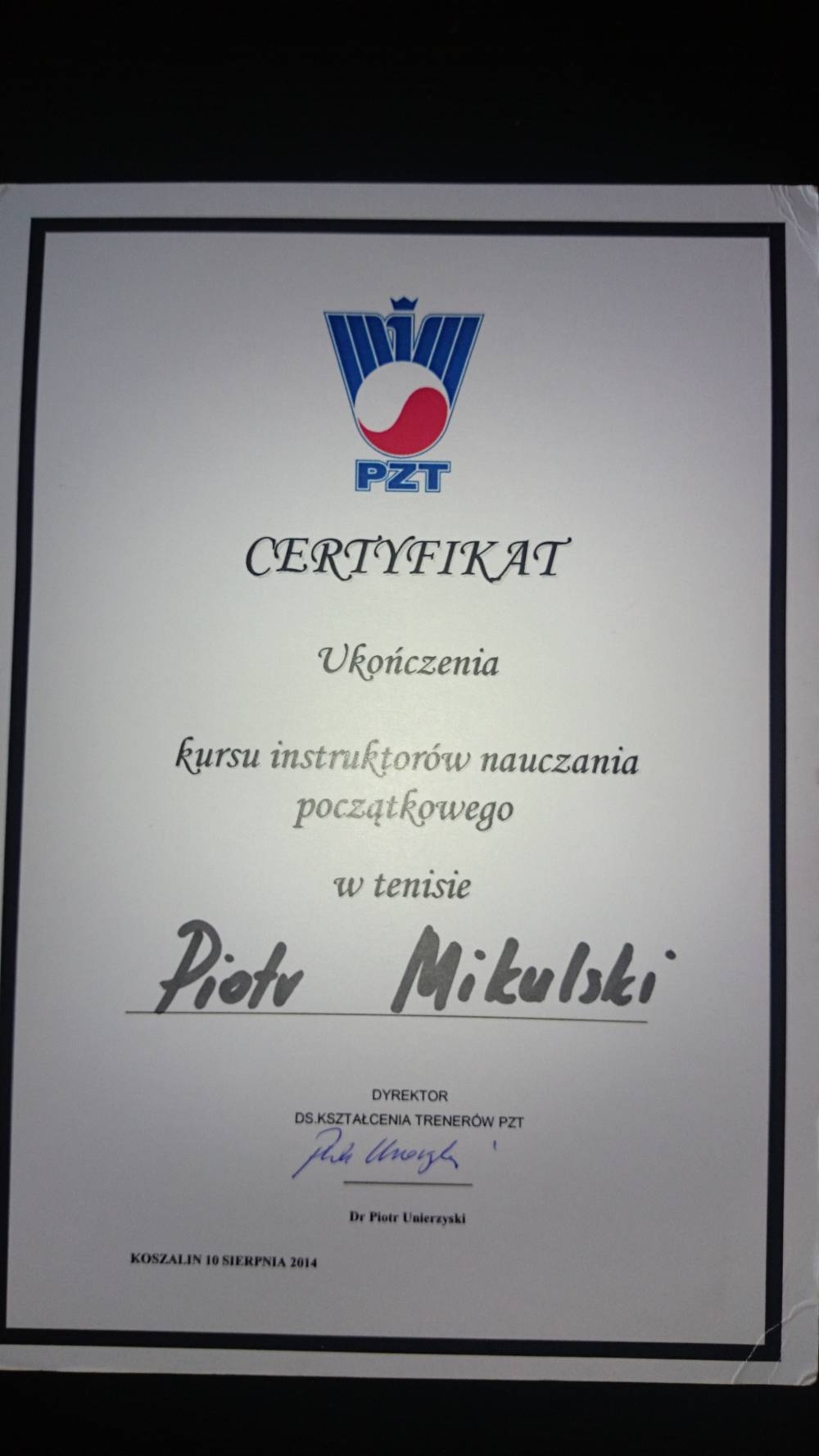 Nazywam się Piotr Mikulski i mam wielką przyjemność zaprosić wszystkich aktywnych do współpracy. Jestem absolwentem studiów magisterskich o kierunku Wychowanie fizyczne -specjalność nauczycielska. Posiadam liczne uprawnienia instruktorskie z dziedziny Kultury Fizycznej, między innymi instruktora pływania i tenisa ziemnego. Zajmuje się pracą z dziećmi od około 10 lat a w sposób usystematyzowany w szkółce pływackiej od 6 i tenisowej od 3 lat. Moją pasją jest nauczanie dzieci i zabawa z nimi zgodnie z mottem: „uczymy bawiąc i bawimy ucząc”. Posiadam również liczne uprawnienia z dziedziny odnowy biologicznej i rehabilitacji, miedzy innymi skończone kierunki podyplomowe w AWF Poznań – specjalista odnowy biologicznej oraz specjalista gimnastyki korekcyjno-kompensacyjnej. Pozwala mi to na szerokie spojrzenie na proces nauczania z punktu widzenia treningu specjalistycznego i ogólnorozwojowego oraz odnowy biologicznej. Od 2010 roku prowadzę również zajęcia nauki pływania dla osób starszych pt.”Pływający SENIOR” i realizując je nabrałem przeświadczenia, iż „każdy Senior pływać może, trochę lepiej lub gorzej ale pływać może”. Na co dzień swoja praktykę opieram za bazie kortu tenisowego i pływalni w hotelu Arka Medical Spa w Kołobrzegu a w sezonie letnim również na kortach zewnętrznych CSiR HELIOS Ustronie Morskie. Na wszystkich zajęciach szczególna uwagę przywiązuję do bezpieczeństwa podopiecznych, co jest pośrednio wynikiem wieloletniego doświadczenia ratowniczego oraz pedagogicznego. Mając na względzie ciągłe zmiany i zapotrzebowanie na coraz wyższy poziom usług na rynku sportowo-rekreacyjnym staram się podwyższać swoje uprawnienia i kwalifikacje poprzez systematyczne szkolenia i kursy w branży – głównie tenisowej i pływackiej.